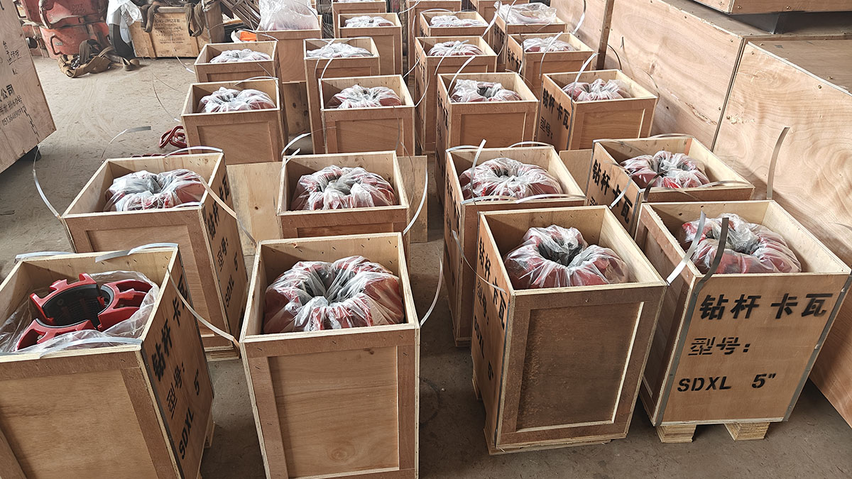 High-quality SDXL rotor slips in sizes 5½", 5", and 3½" have successfully passed factory testing and are awaiting export. We consistently supply our clients with high-performance, cost-effective wellhead tools for oil and gas drilling, including elevators, rotor slips, mechanical tongs, hydraulic tongs, and more. Two years ago, this client purchased several sets of slips and elevators from us for quality verification. Following long-term field use, the client was highly satisfied with our product performance, prompting them to place an order for 24 sets of slips in various sizes this time.